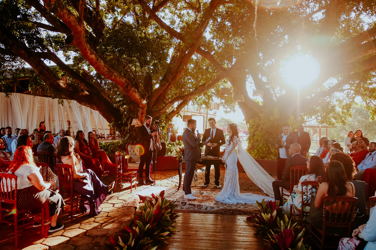 Para aquelas noivas que sonham com um casamento em um final de tarde esse casamento foi abençoado com um belo por do sol, durante a cerimonia, um casal apaixonado e convidados que amaram dividir esse momento com eles, espero que amem as fotos como eu amei cada registro aqui temos algumas para vocês terem um vislumbre de dia lindo.